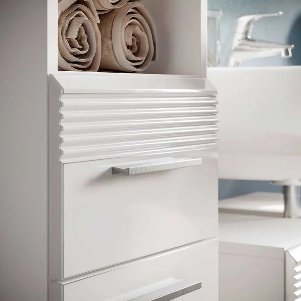 - Front brillant hochglänzend, Rillendekor, Kanten tiefgezogen