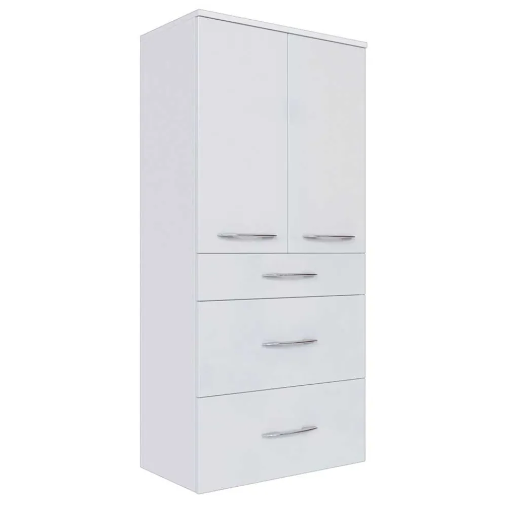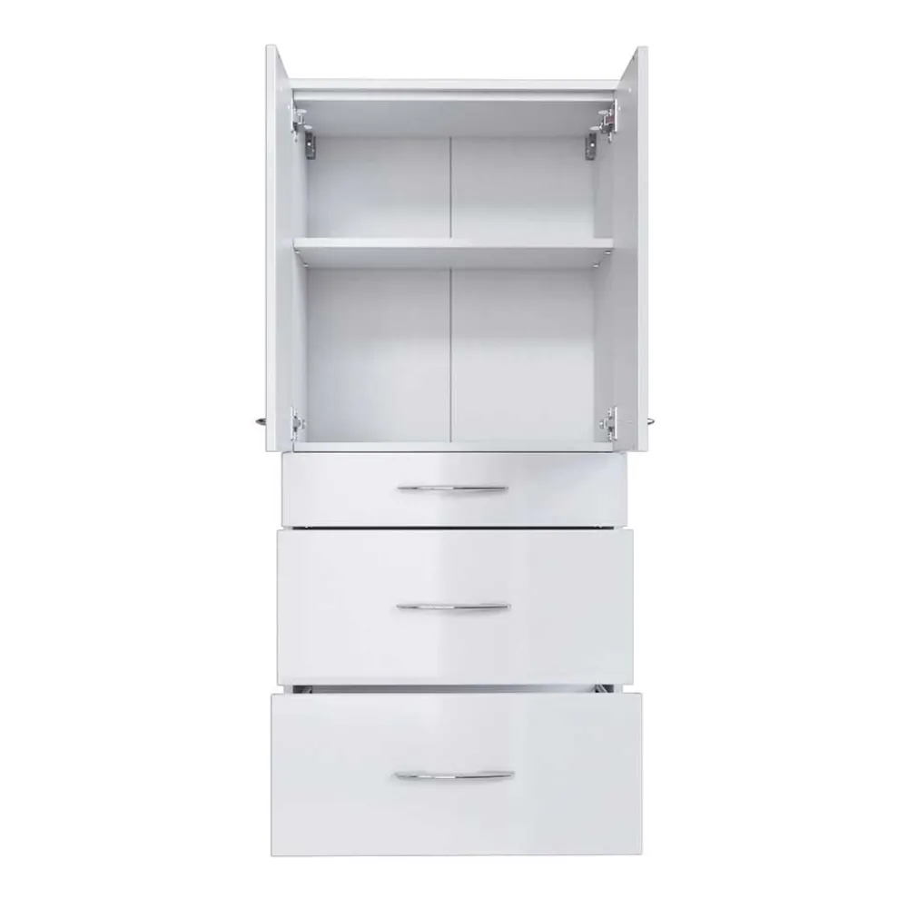 - Front in Hochglanz foliert, Korpus in Weiß matt melaminbeschichtet