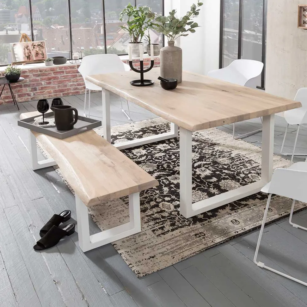 - Topaktuelle Sitzgruppe in Eiche White Wash und Weiß