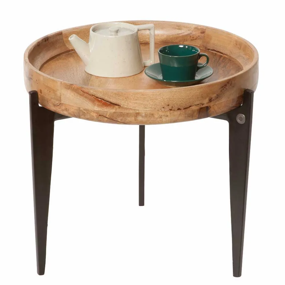 - Exzellenter Beistelltisch in Schwarz und Mangoholz Naturfarben