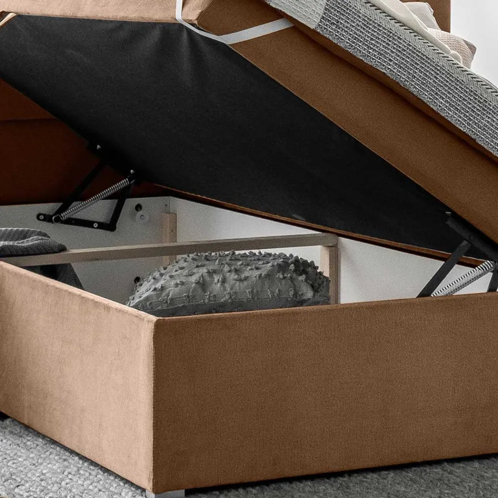 - Zwei geräumige Bettkästen, die jeweils in zwei Teile unterteilt sind, Öffnung mit Lift Funktion an den Längsseiten