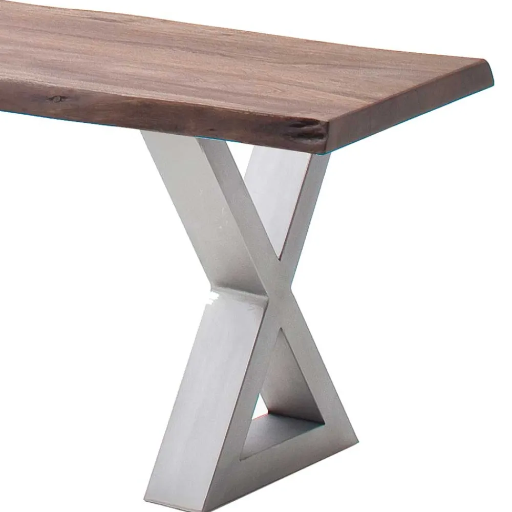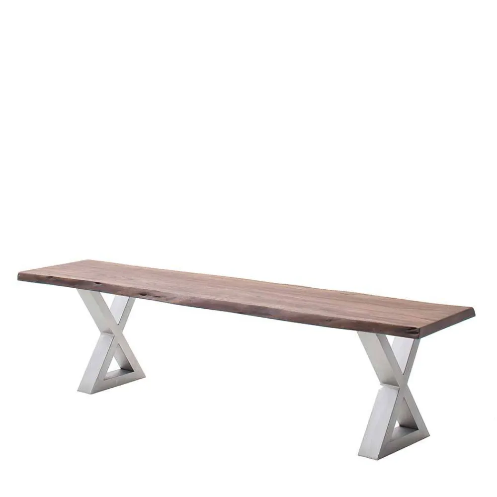 - Super Esstisch Bank in Walnuss- und Edelstahlfarben