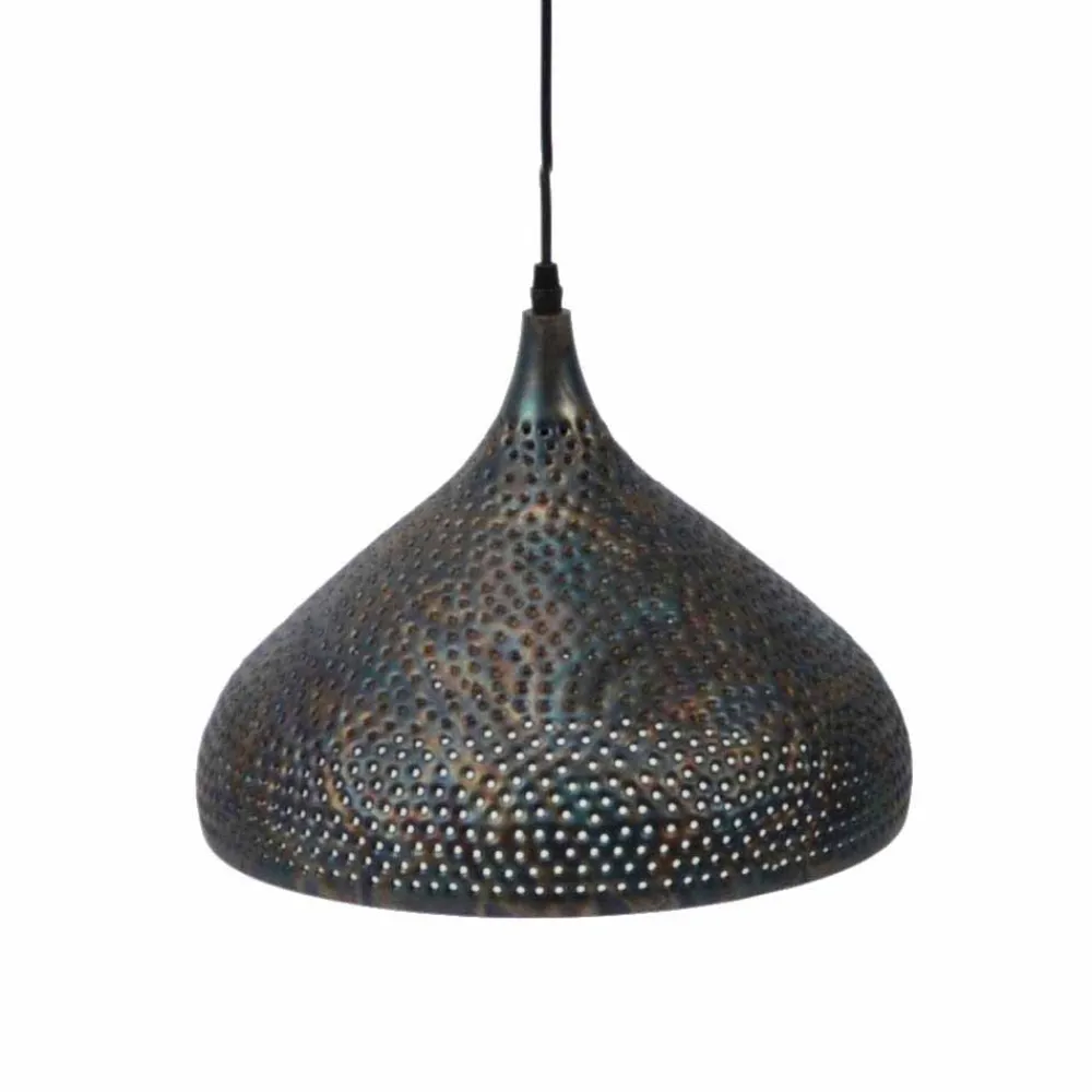 - Drei trichterförmige Schirme, dekorativ perforiert, das Licht schimmert hindurch