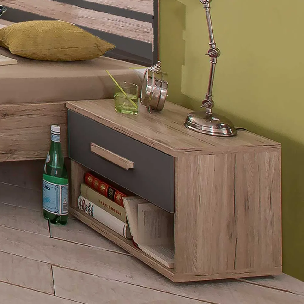 - Stylische Nachtkommode in Weiß und Eiche San-Remo