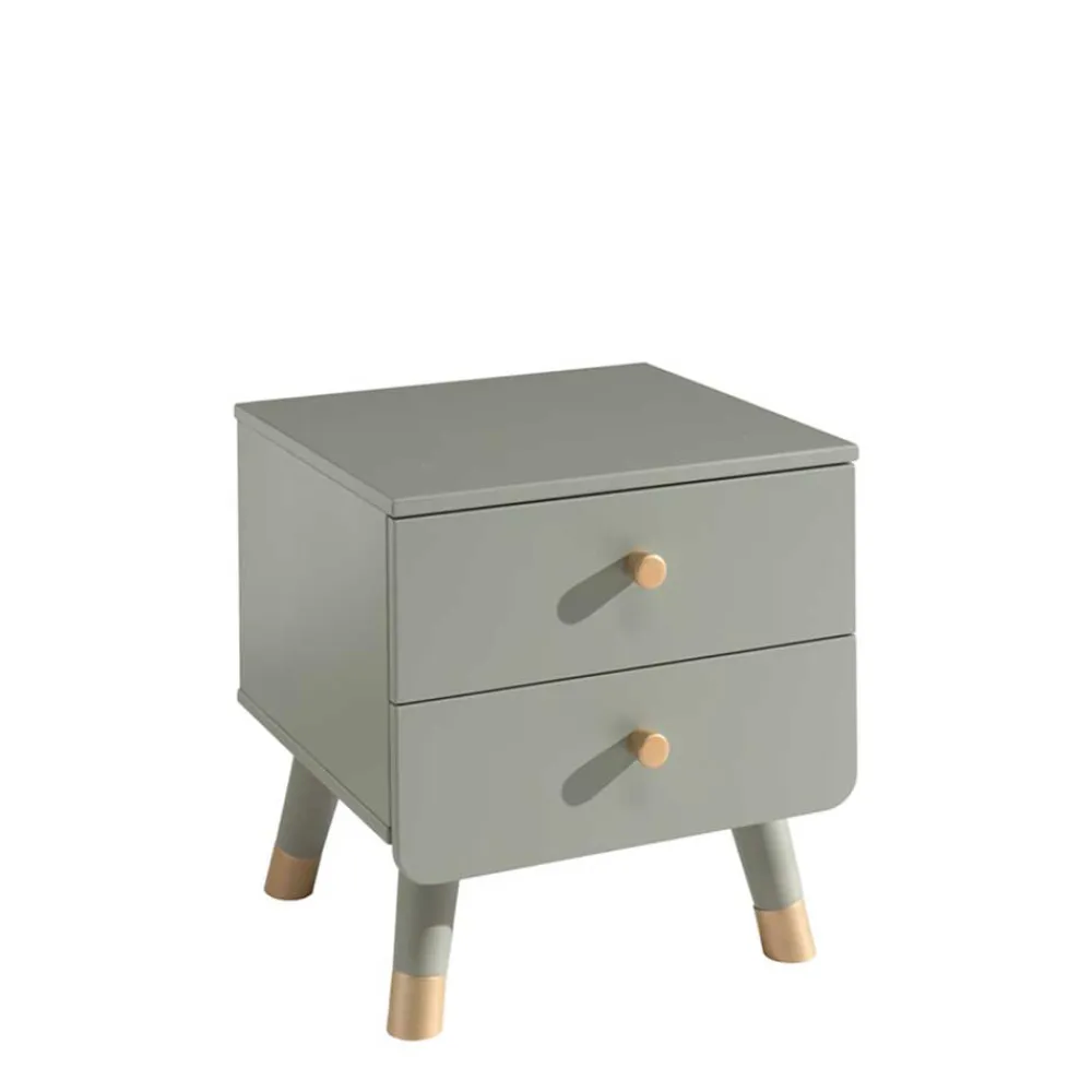 - Kompakte Nachtkommode in Graugrün und Goldfarben