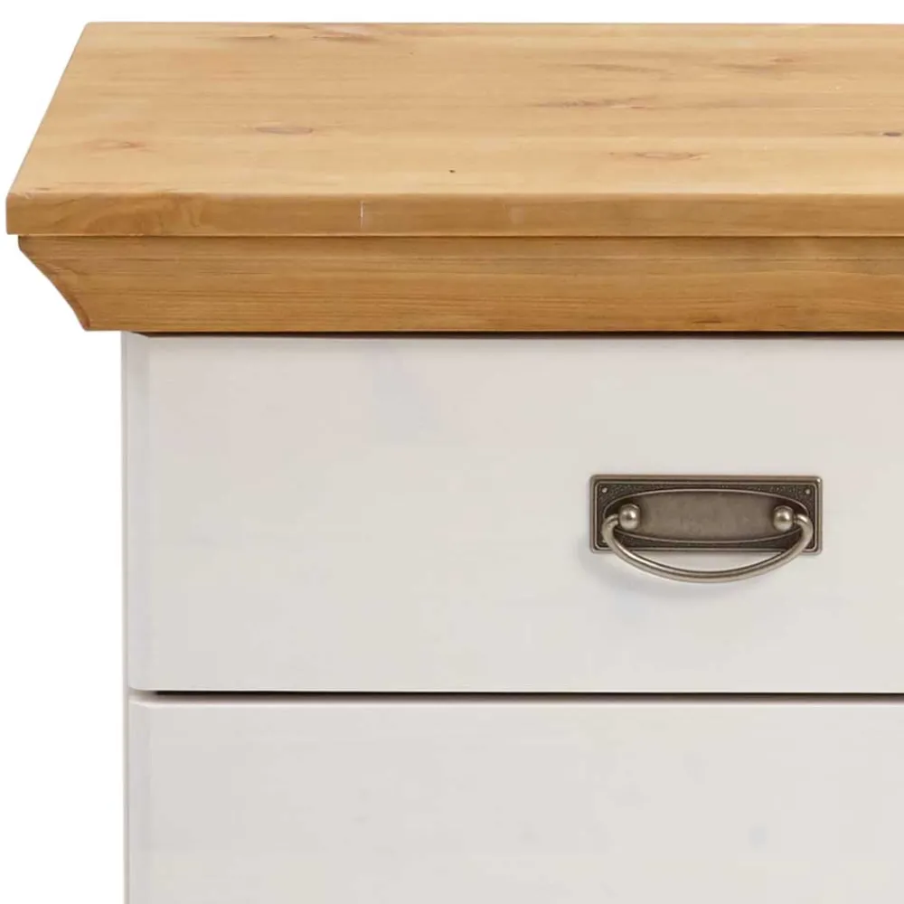 - Wunderschöne Nachtkommode in Weiß und Kiefer Laugenfarben