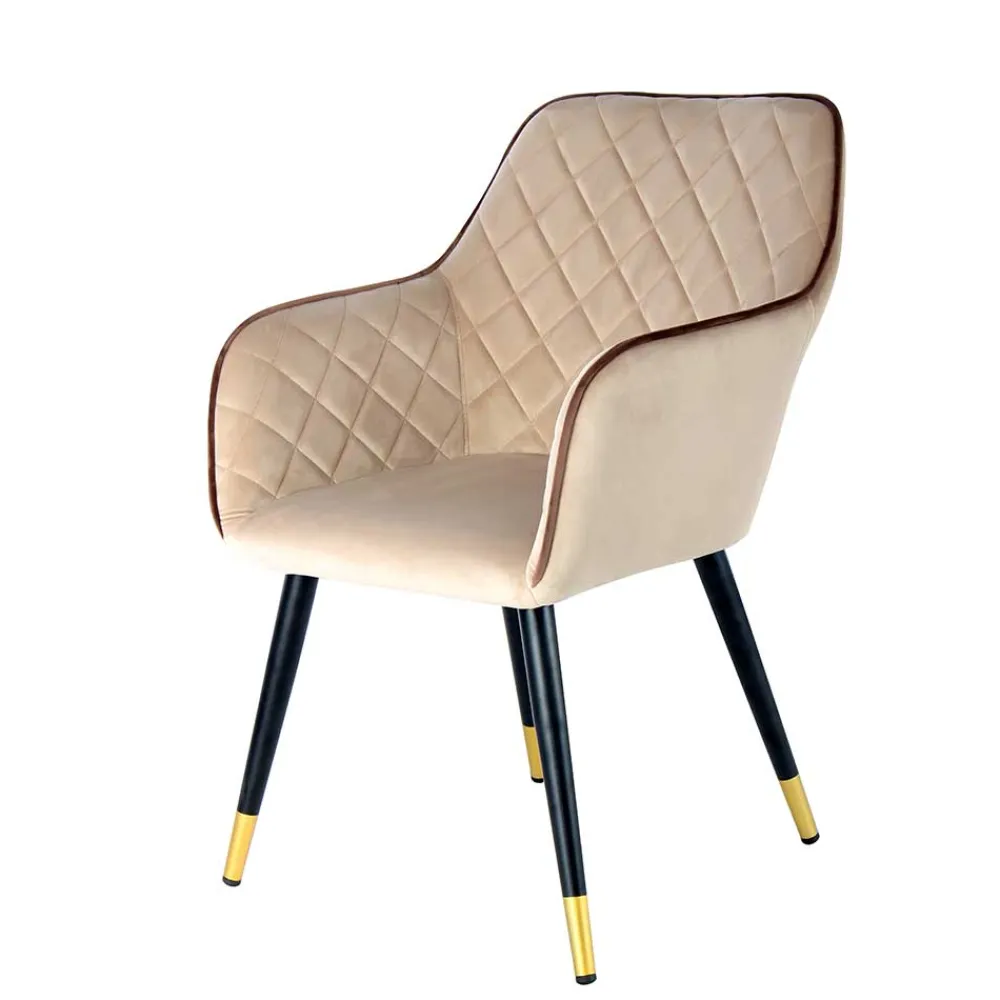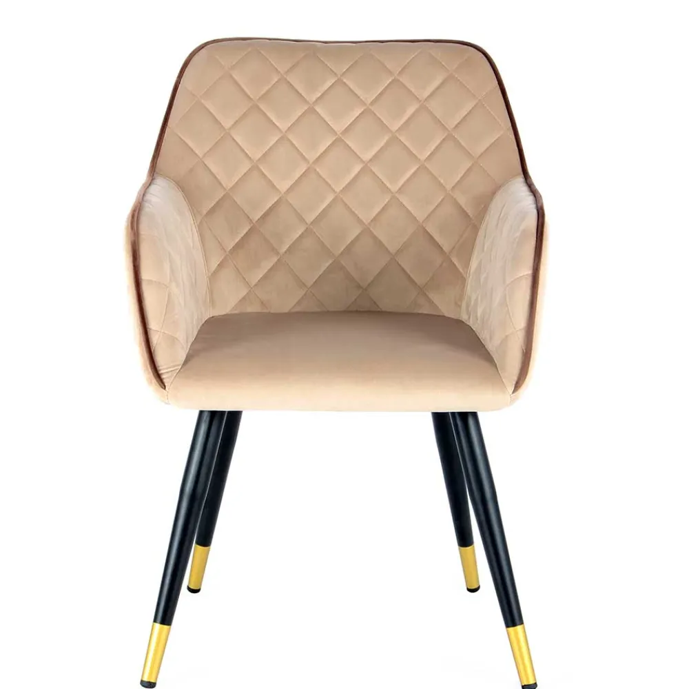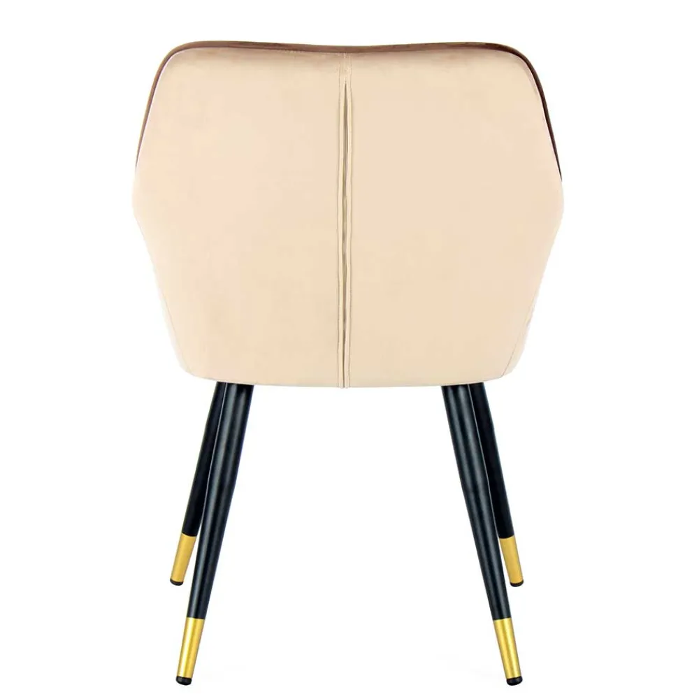 - Eleganter Armlehnstuhl in Beige, Schwarz und Goldfarben