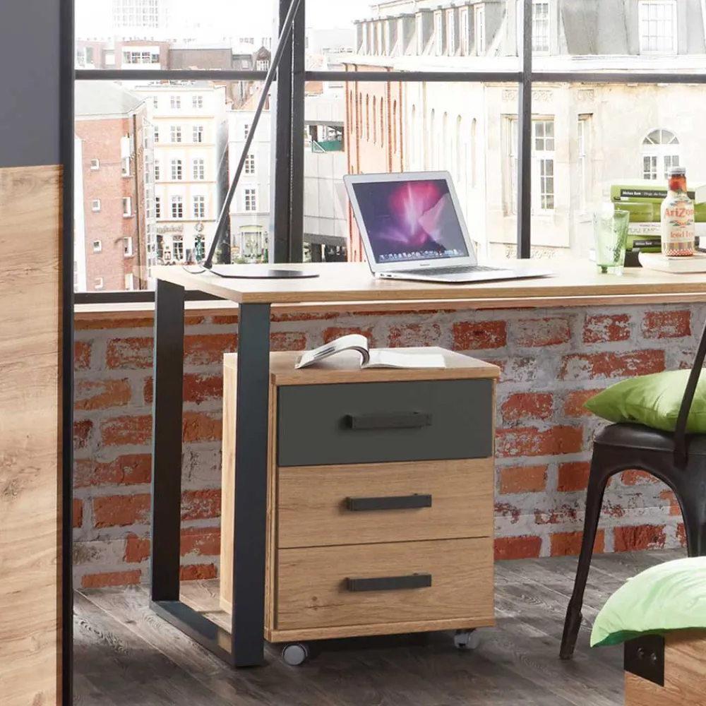 - Geräumiger Rollcontainer in Plankeneiche Holzoptik und Dunkelgrau