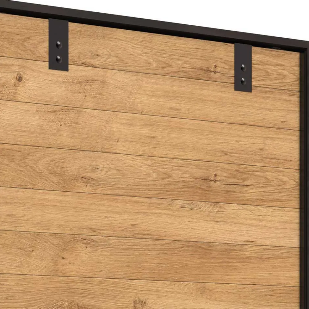 - Oberflächen in Holzoptik Plankeneiche und Schwarzgrau foliert, Metall in Schwarz pulverbeschichtet