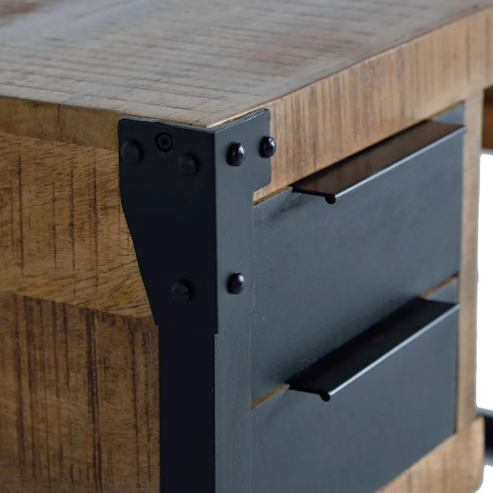 - Rustikaler Schreibtisch in Mangoholz Naturfarben und Schwarz