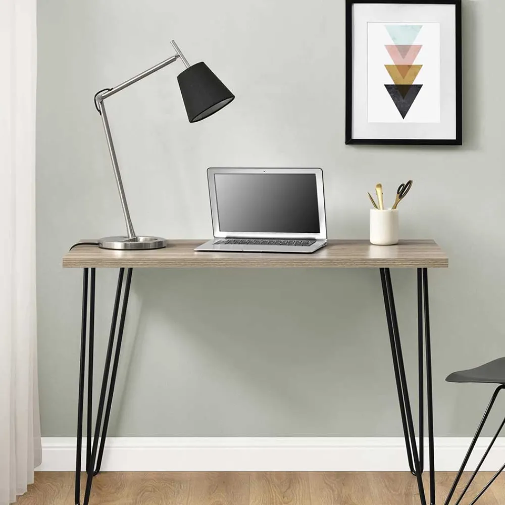 - Reduzierter Schreibtisch in Eichefarben und Schwarz