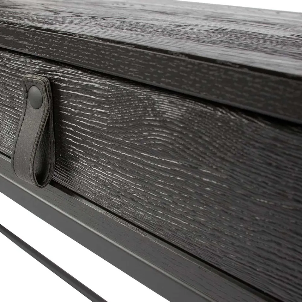 - Holzoberfläche gebürstet und lackiert, Unebenheiten, feine Risse und Astlöcher unterstreichen den charaktervollen Look