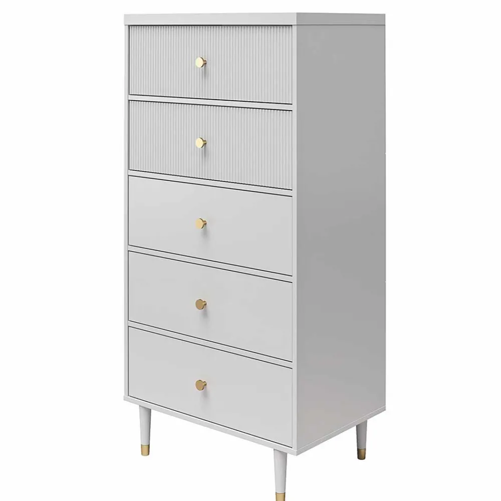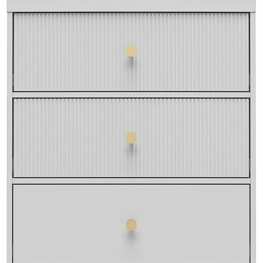 - Die beiden oberen Schubladen sind mit dekorativer Rillenstruktur gestaltet