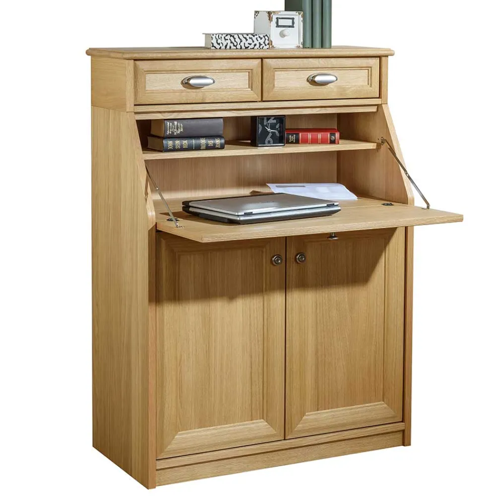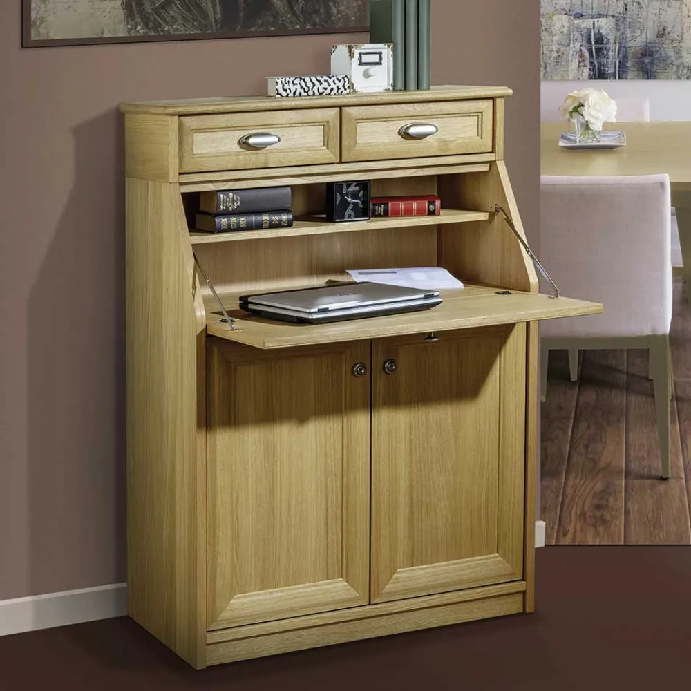 - Schreibklappe mit stabilen Metallbeschlägen, geräumige Inneneinteilung mit einem Einlegeboden, Höhe der Platte ca. 73,5 cm