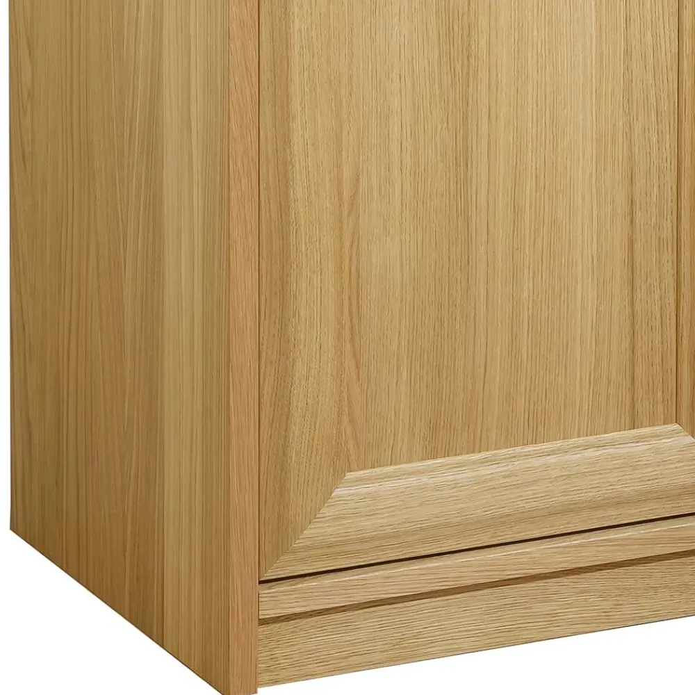 - Die Richtung der Holzmaserung der oberen Klappenfronten verläuft dekorativ quer mit den Seitenaufsätzen zu den unteren Türfüllungen