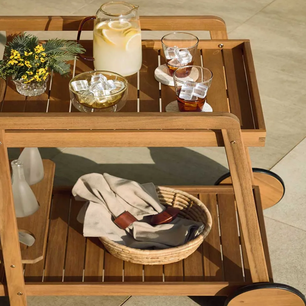 - Outdoor Servierwagen in Akaziefarben