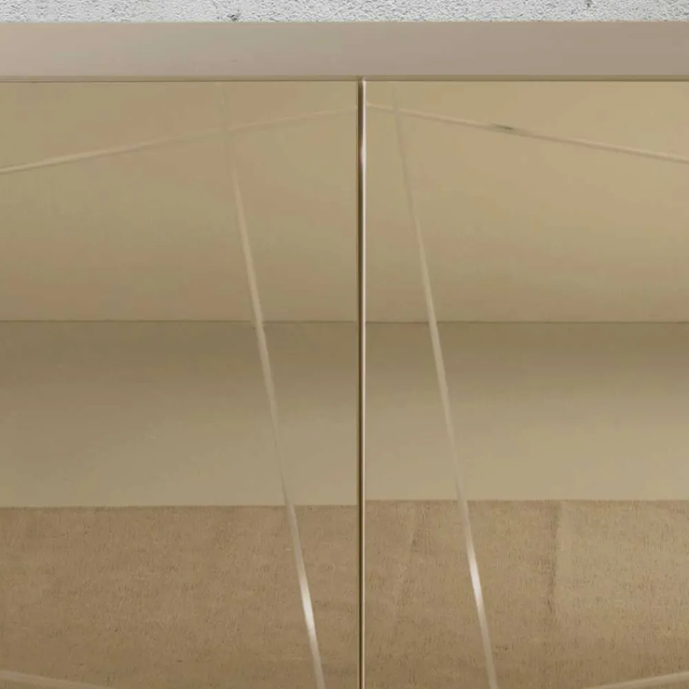- Korpus in Taupe melaminbeschichtet, Front mit bronzefarbigem Spiegelglas beschichtet