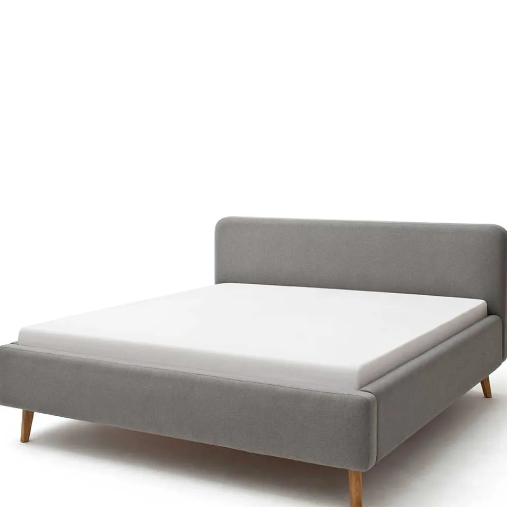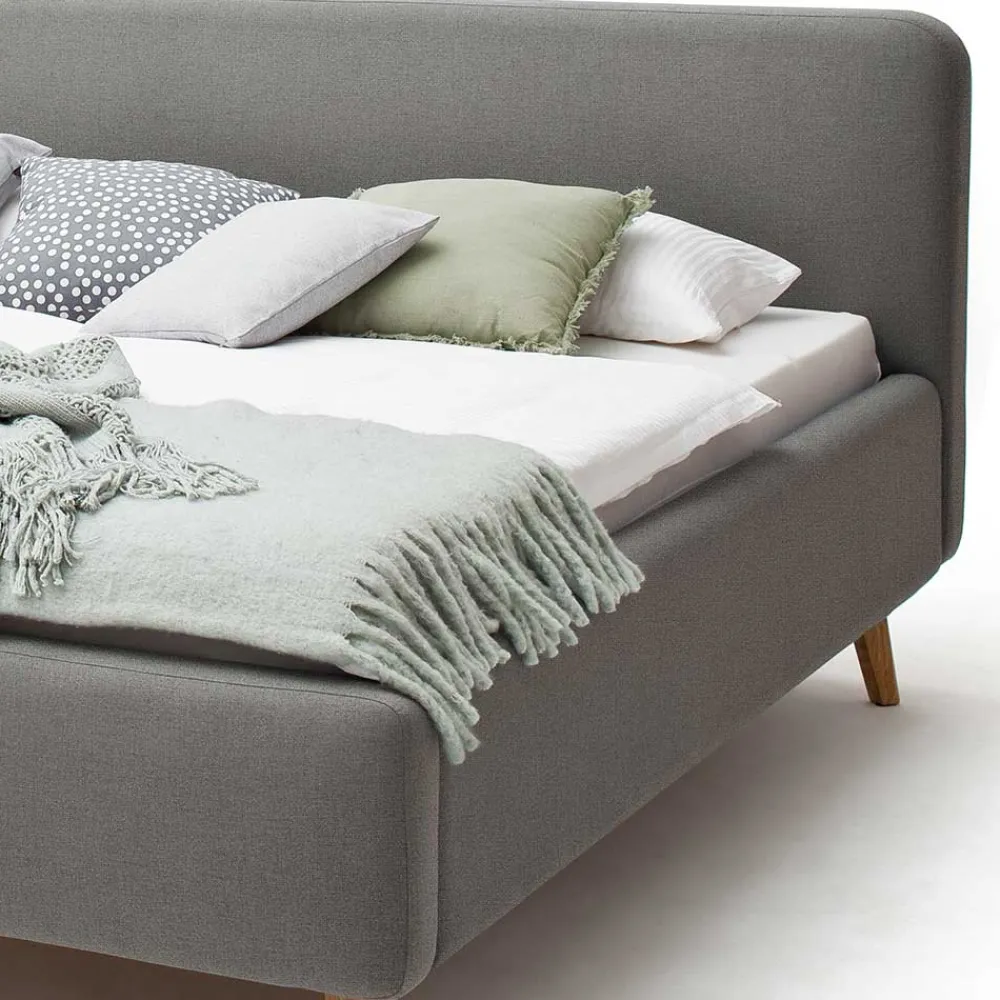 - Elegantes Polsterbett in Hellgrau und Eichefarben