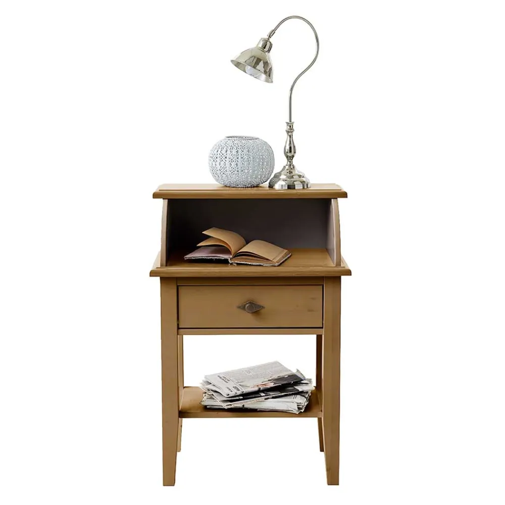 - Schöner Telefontisch in Kiefer Laugenfarben, Rückwand in Grau
