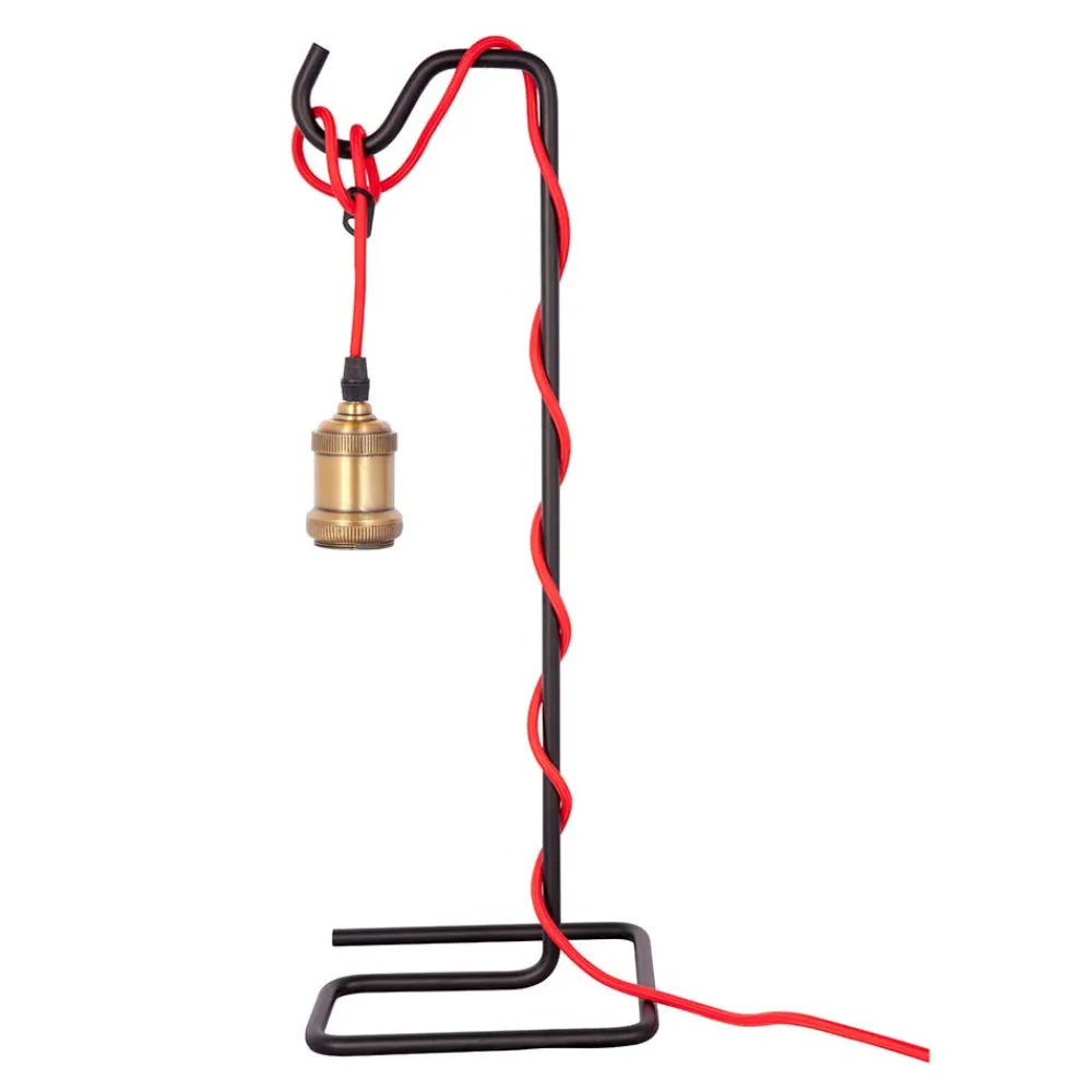 - Ein rotes Kabel wird individuell um den Lampenhalter geschlungen