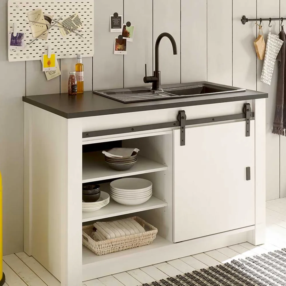 - Attraktiver Küchen Unterschrank in Weiß und Anthrazit