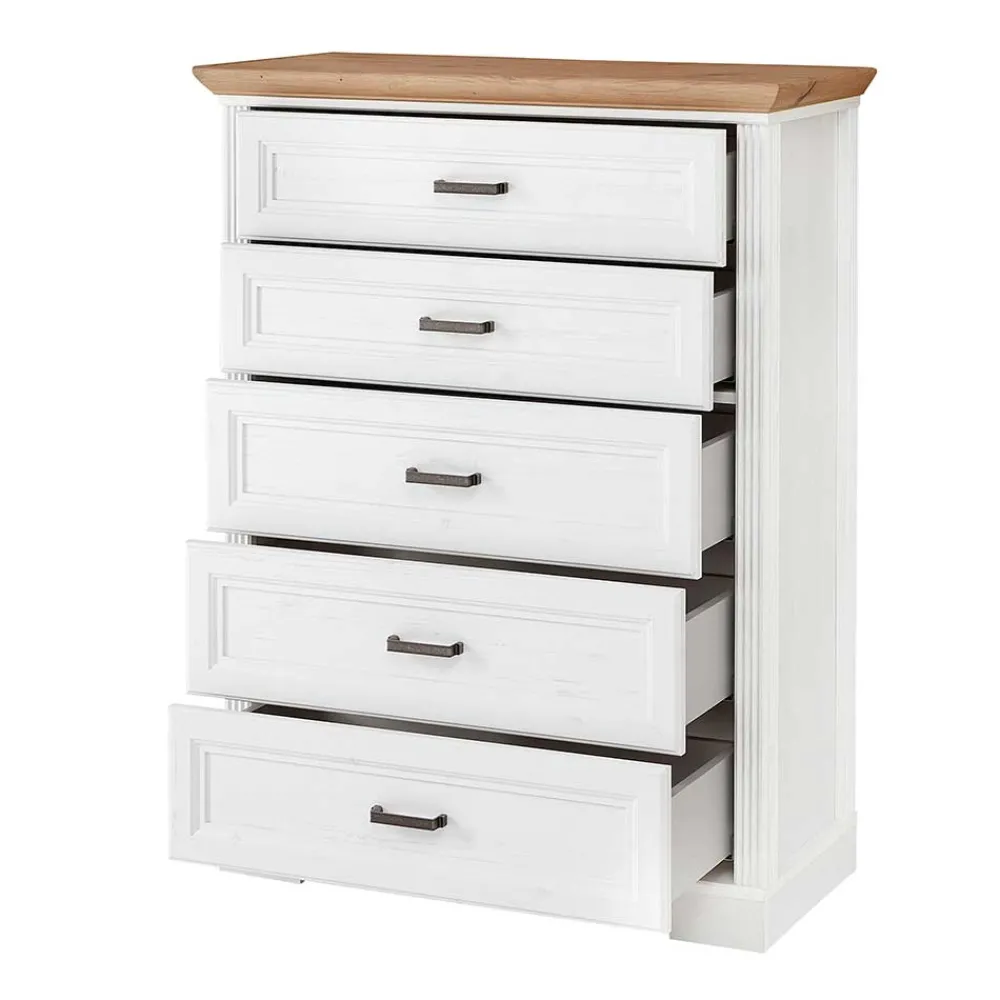 - Vielseitige Kommode in Pinie Weiß und Eichefarben