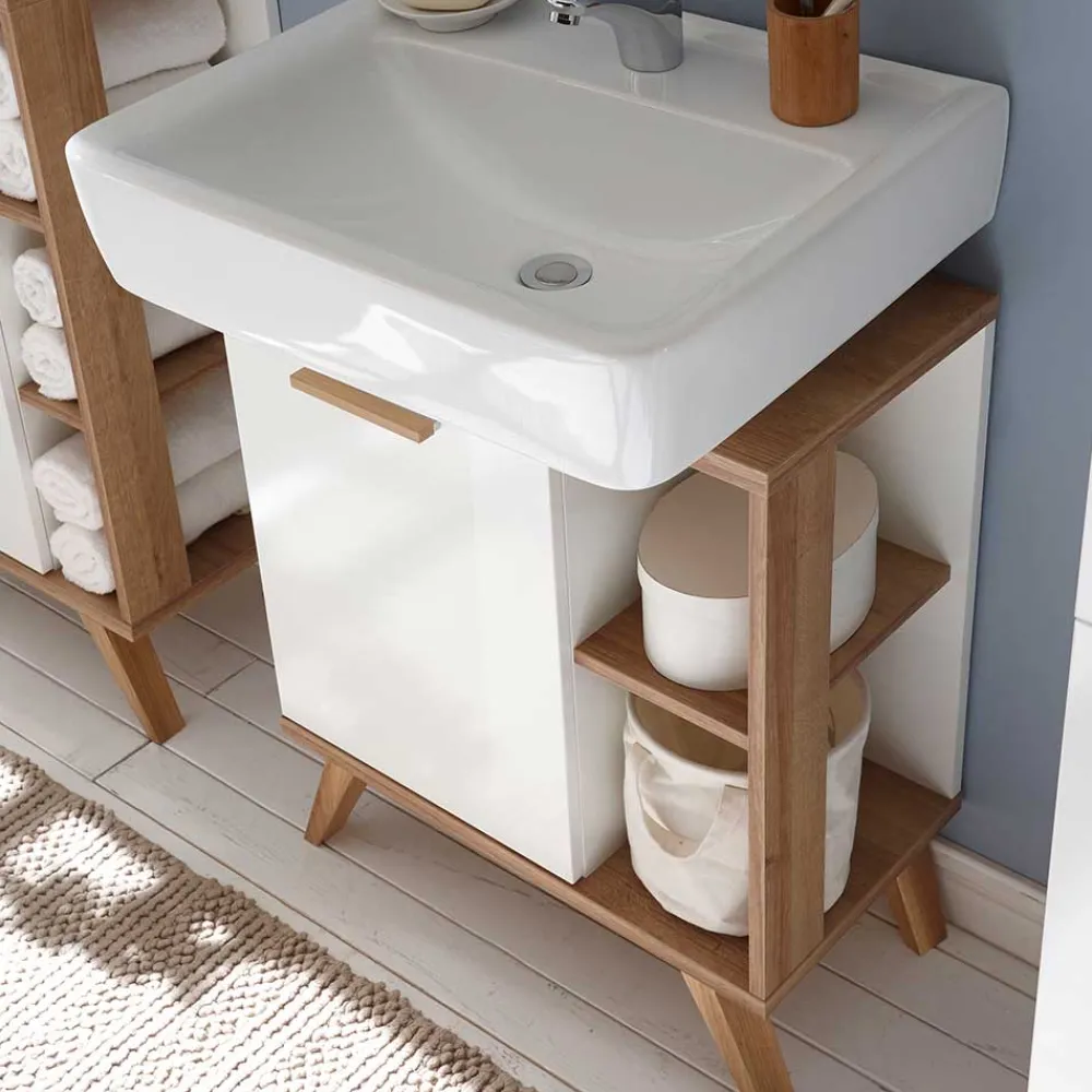 - Prima Waschbeckenunterschrank in Weiß und Eichefarben