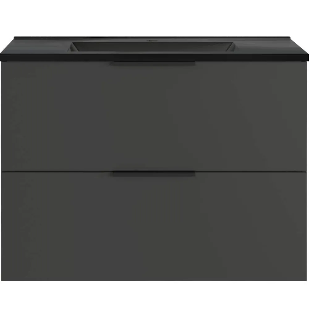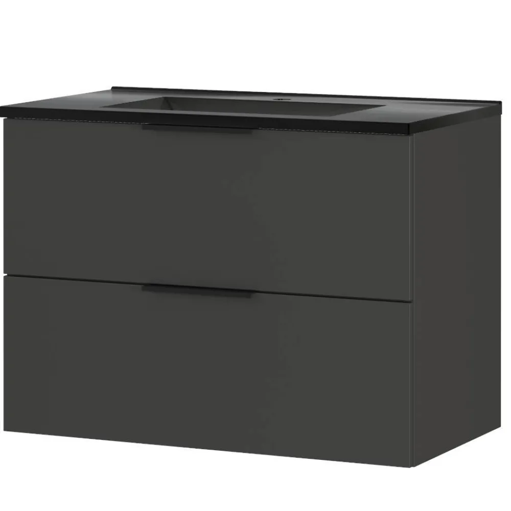 - Schwarzes Mineralguss-Waschbecken mit Lack-Beschichtung inklusive