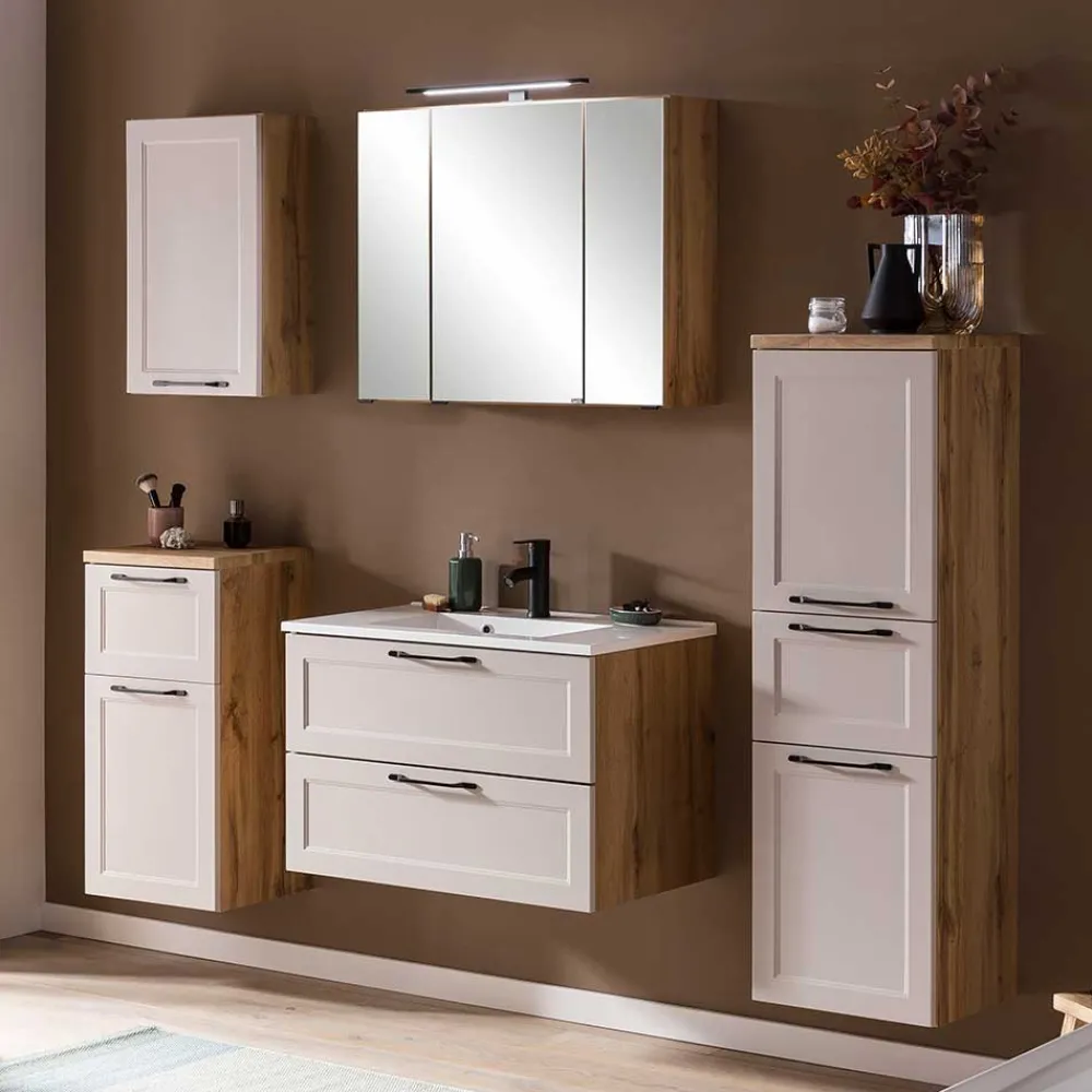 - Unempfindlicher Waschbeckenschrank in Hellgrau und Wildeichefarben