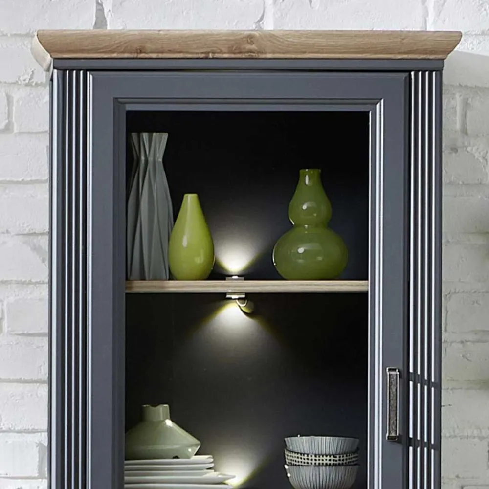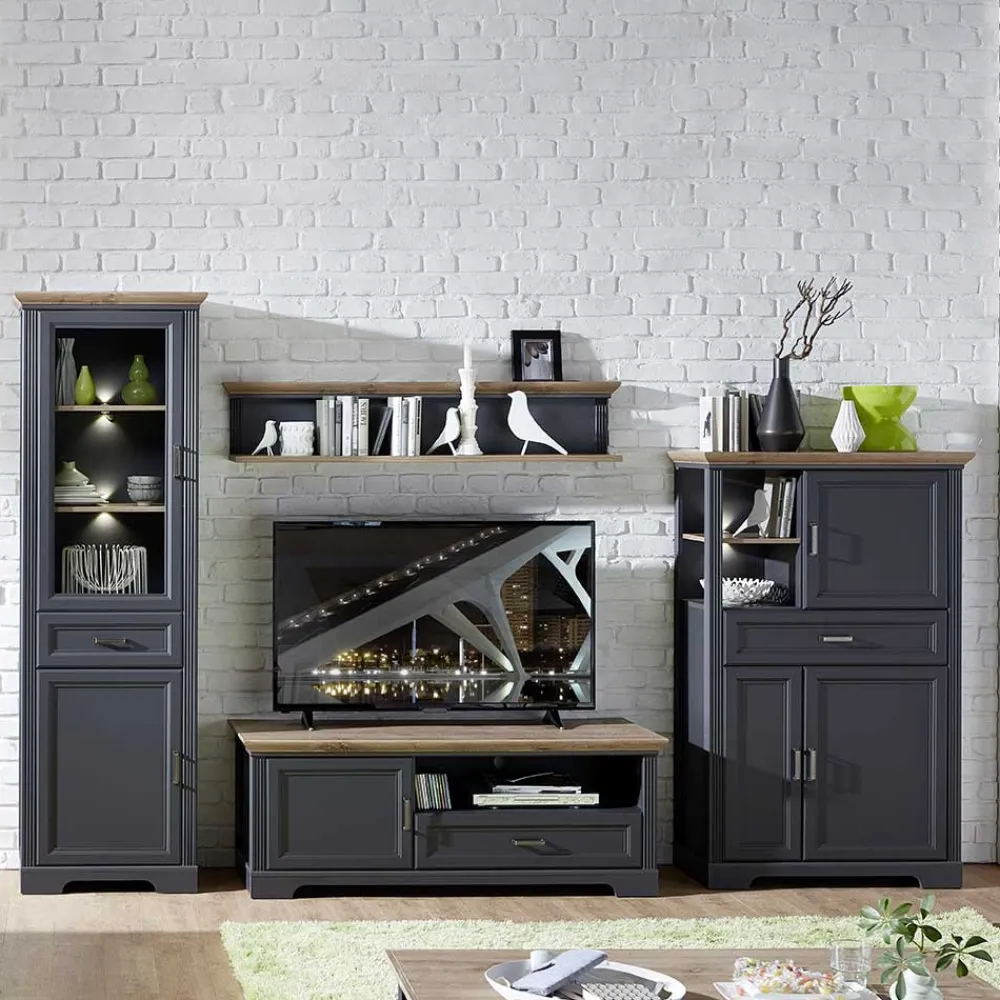 - Erstklassige Wohnwand in Dunkelgrau und Eichefarben