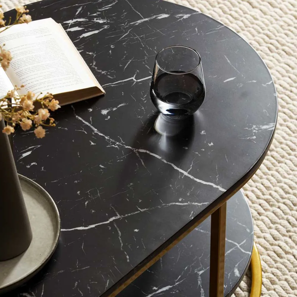 - Schicker Couchtisch in Schwarz-Grau und Goldfarben