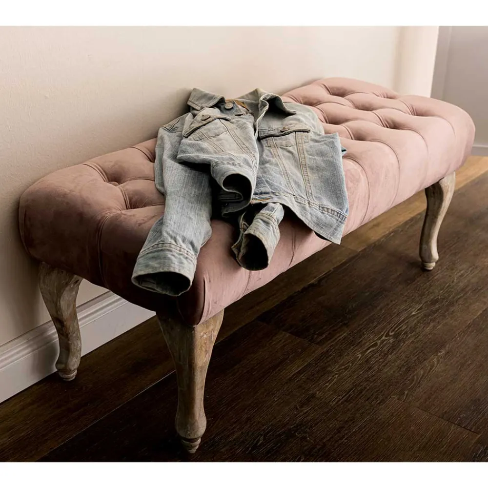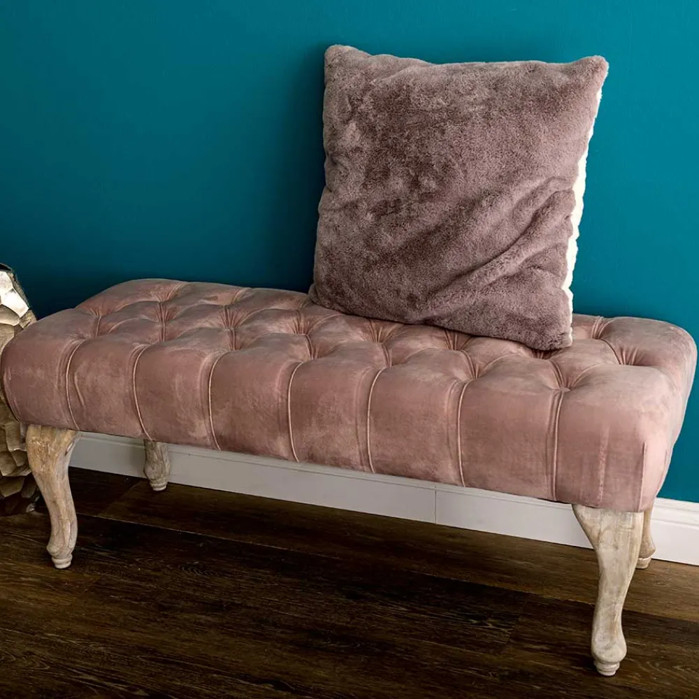 - Hübsche Polsterbank in Altrosa und Holz White Wash