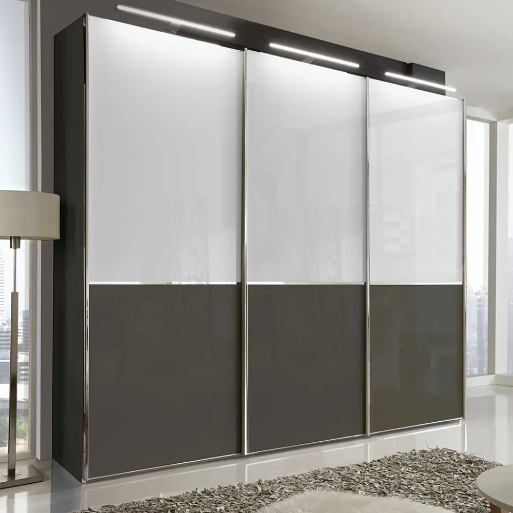 - Drei leichtlaufende Schwebetüren, dahinter drei Facheinheiten (96,4/80,1/96,4 cm)