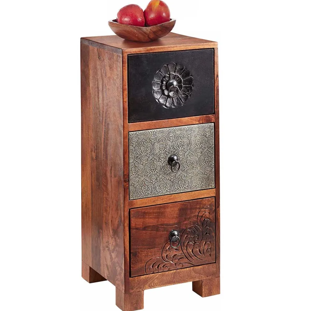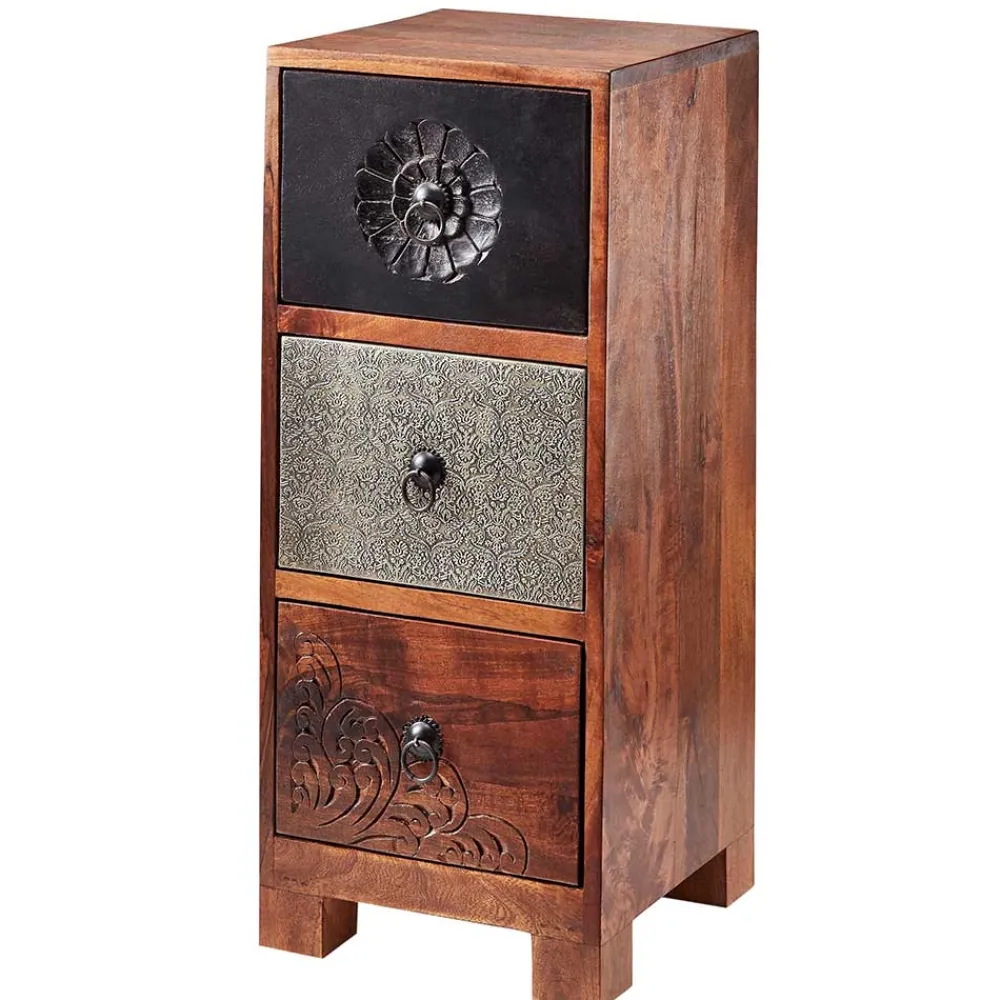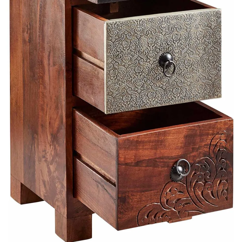- Trendige Schubladenkommode in Akaziefarben, Grau und Braun