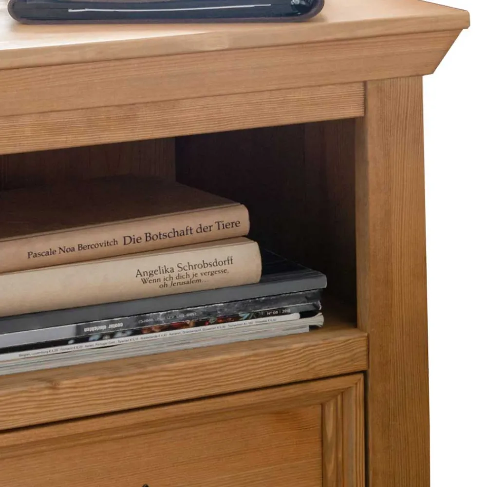 - Ein offenes Fach und eine Schublade mit Metallauszug