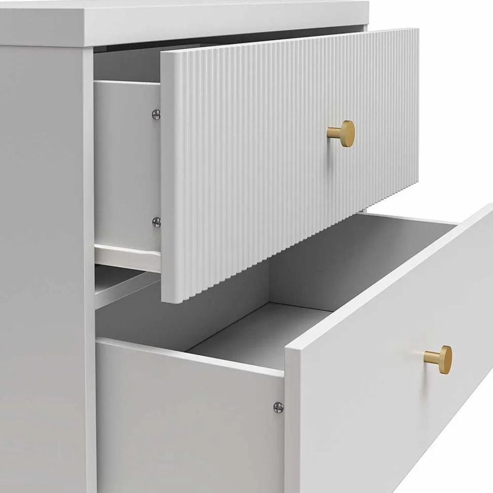 - Oberflächen melaminharzbeschichtet, obere Schubkastenfront mit dekorativer Rillenstruktur gestaltet