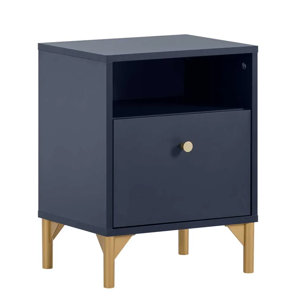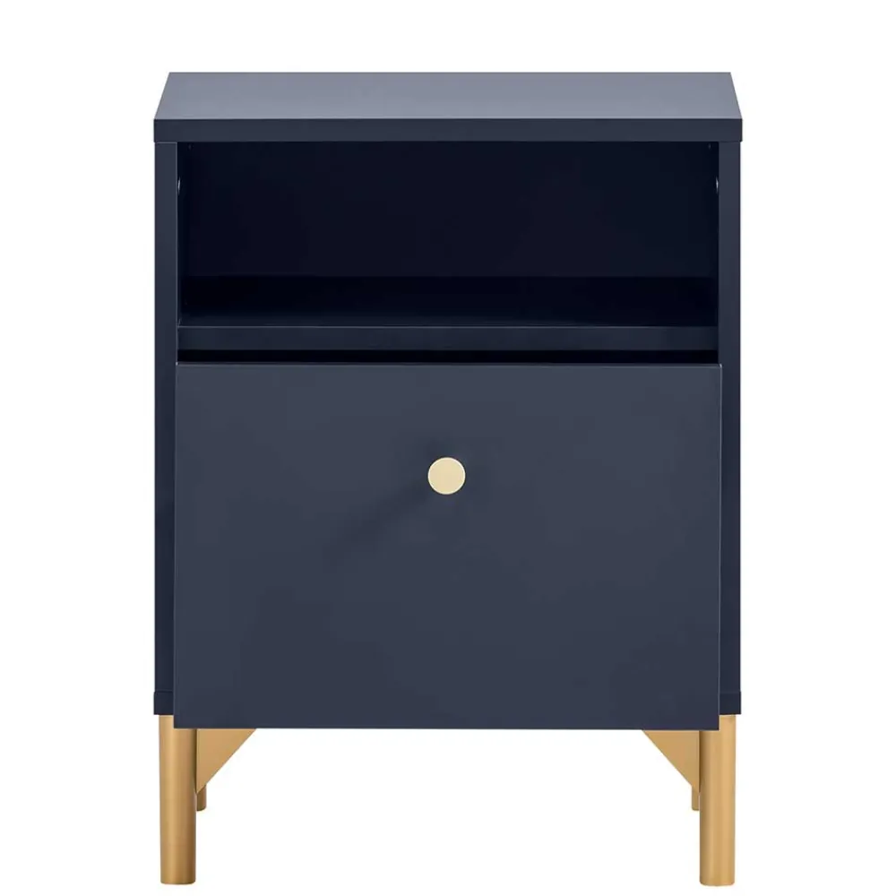 - Trendige Schlafzimmermöbel in Dunkelblau und Goldfarben