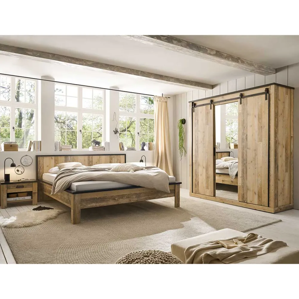 - Attraktive Schlafzimmer Möbel in Altholzoptik verwittert und Anthrazit