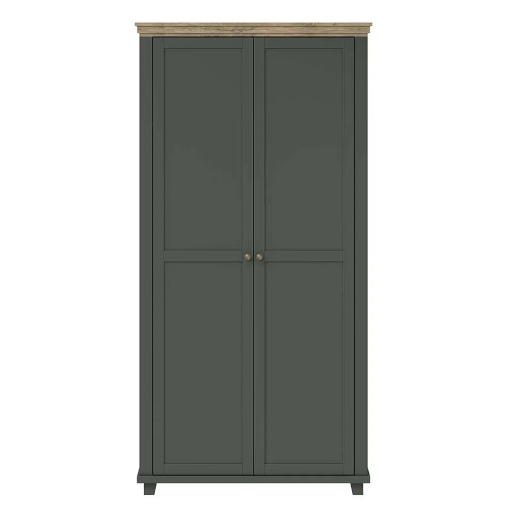 - Attraktiver Kleiderschrank in Dunkelgrün und verwitterter Holzoptik