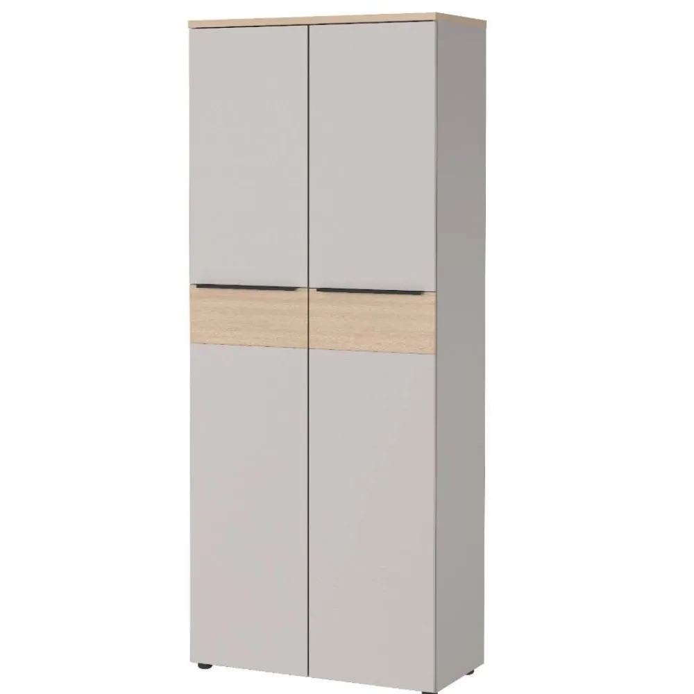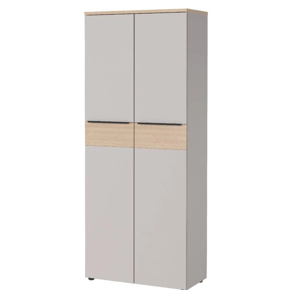 - Zeitloser Aktenschrank in Hellgrau und Eiche hell
