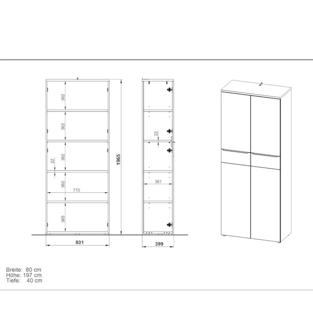 - 80 cm Breit, 197 cm Hoch, 40 cm Tief
