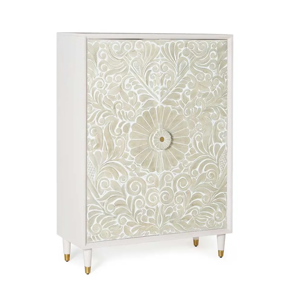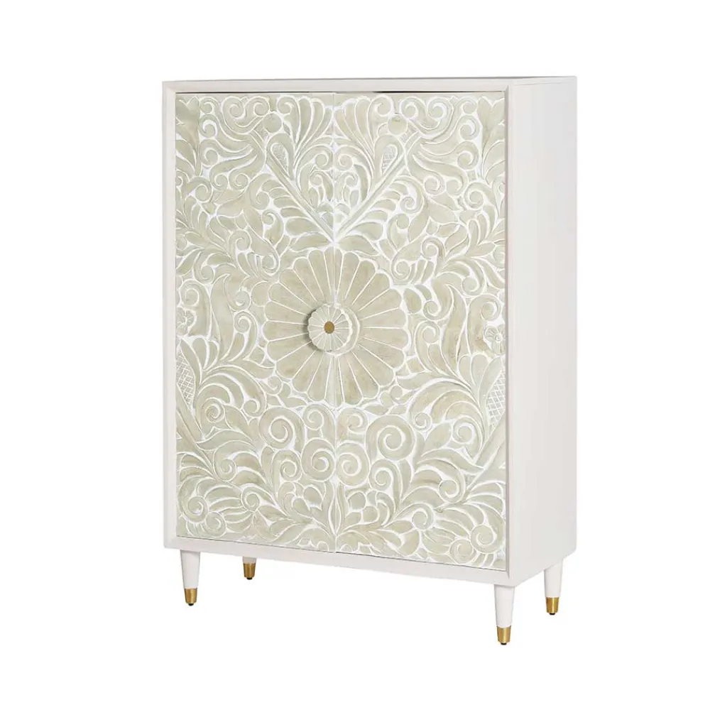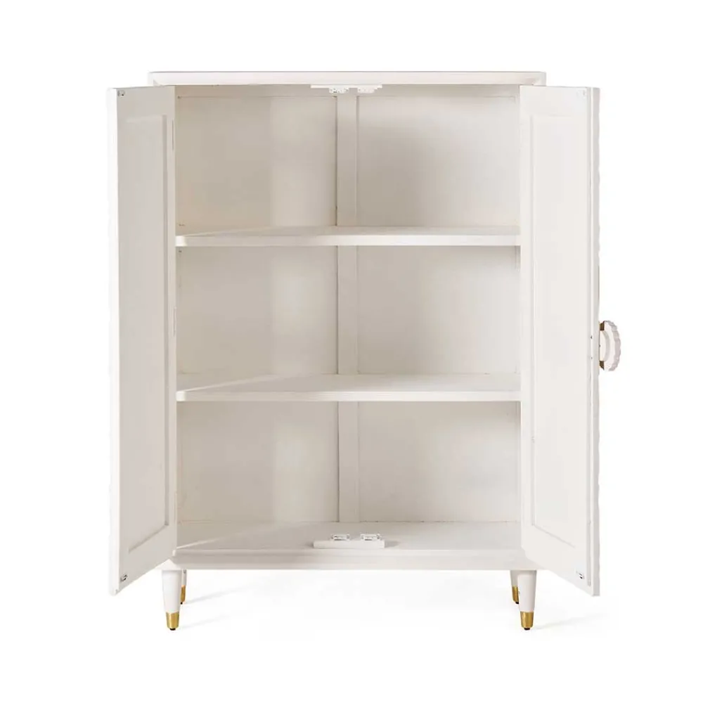 - Elegantes Highboard in Weiß-Cremeweiß und Goldfarben