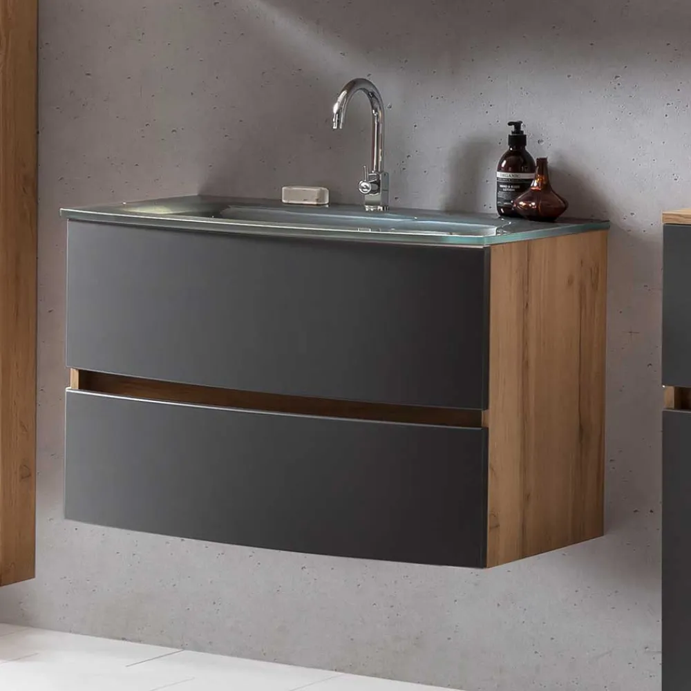 - Exquisiter Waschtisch in Grau und Wildeichefarben