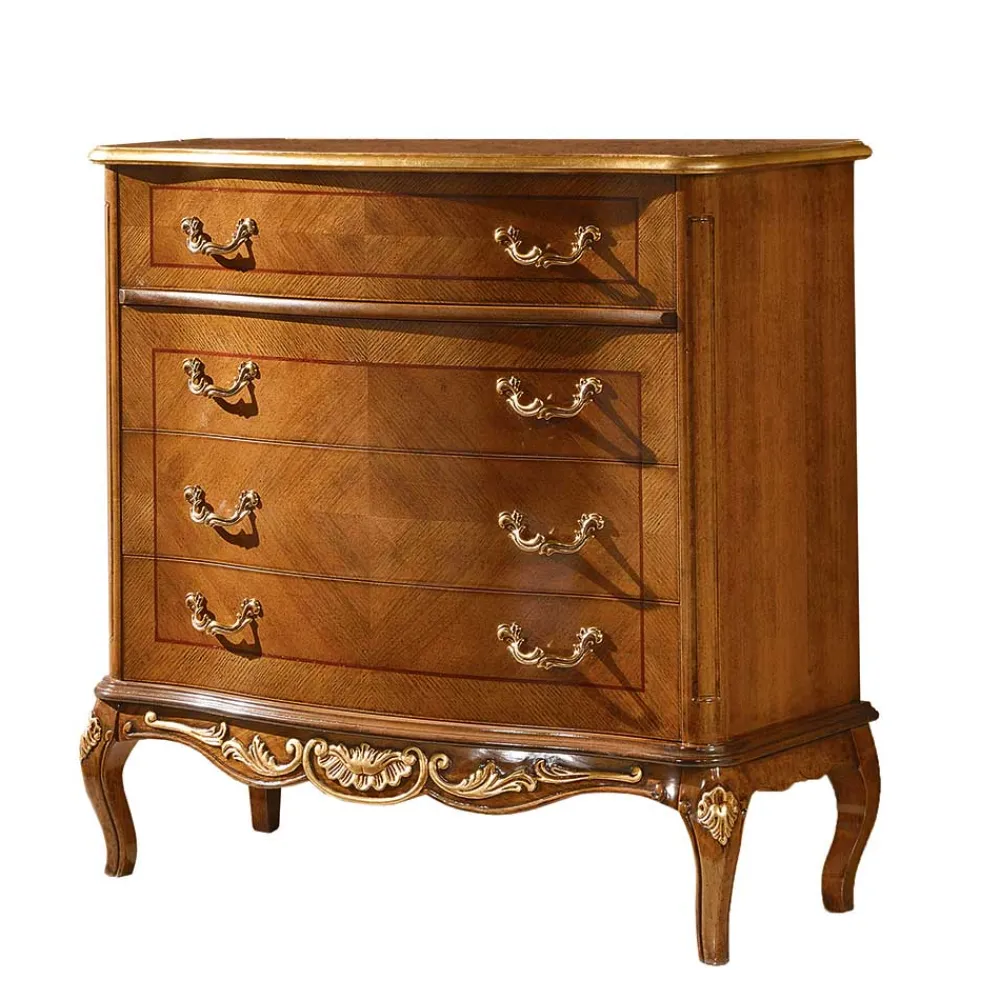 - Großartige Schubladenkommode in Nussbaum- und Goldfarben