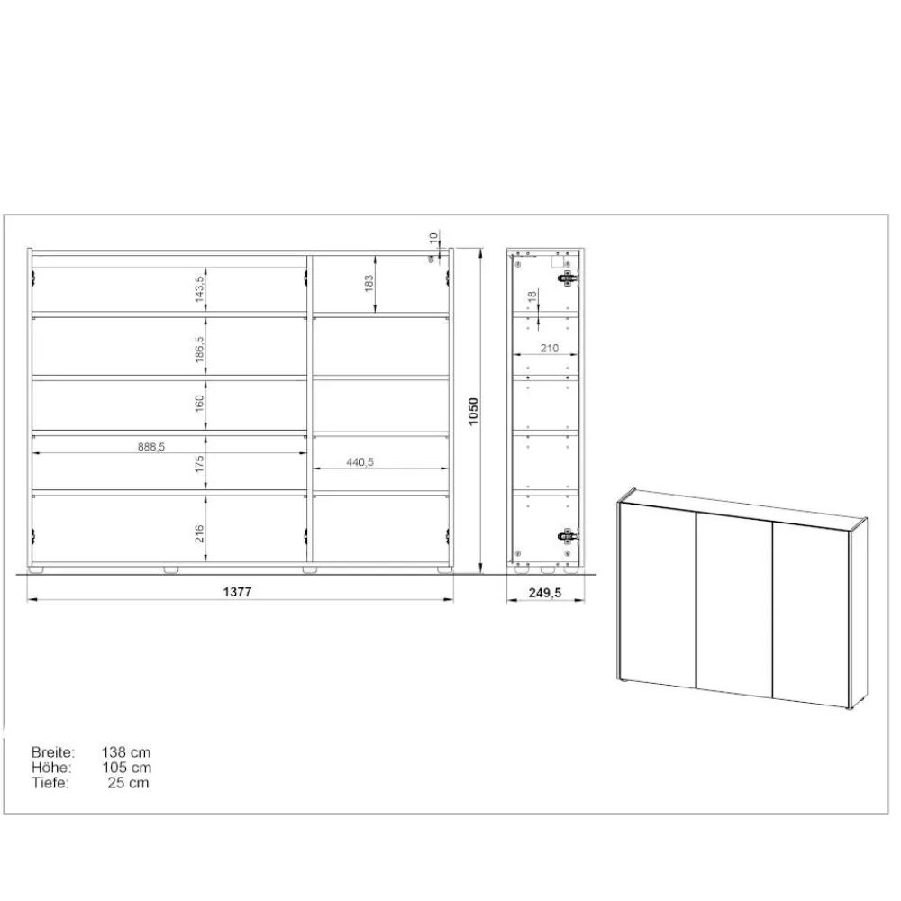- 138 cm Breit, 105 cm Hoch, 25 cm Tief