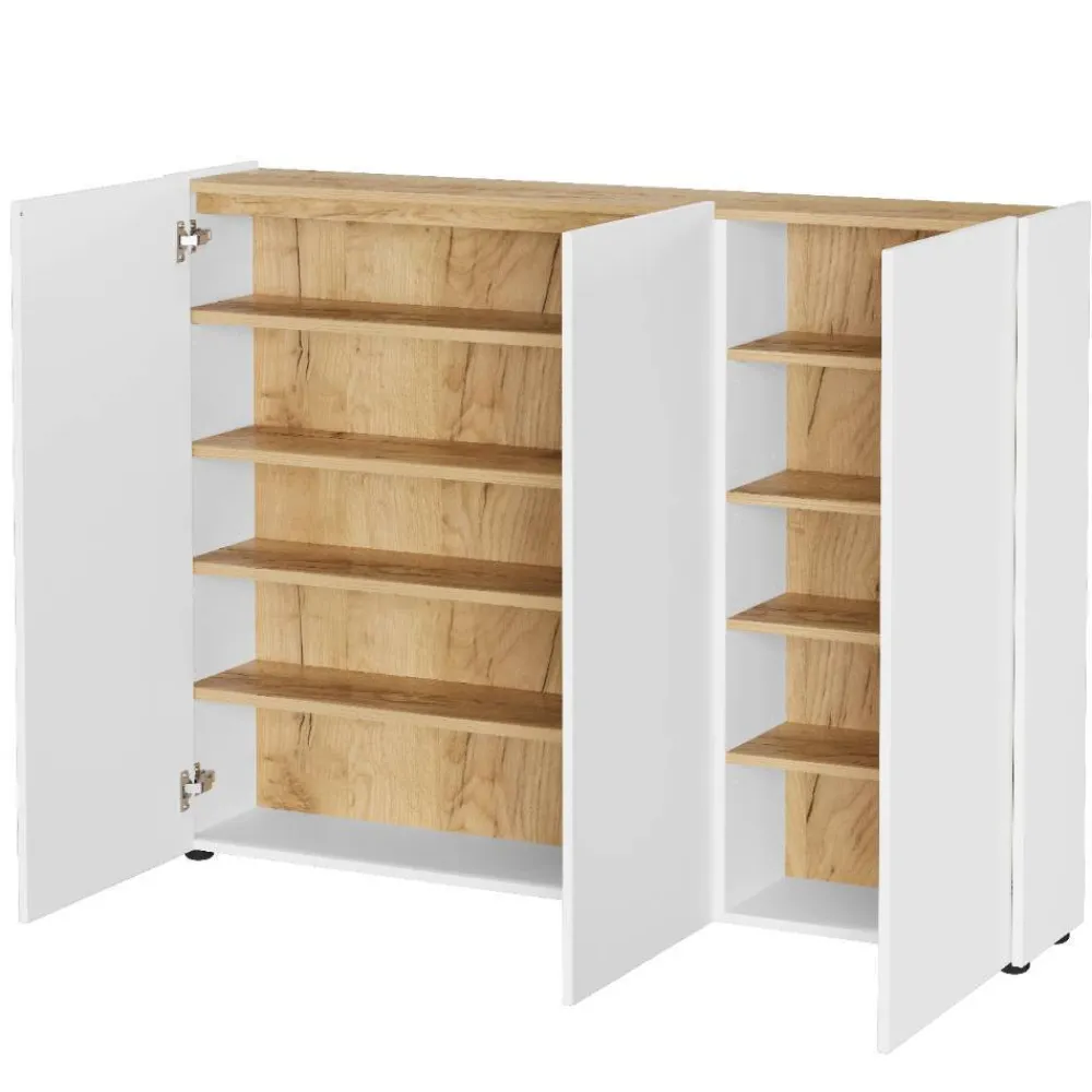 - Zweckmäßiger Schuhschrank in Weiß und Wildeichefarben