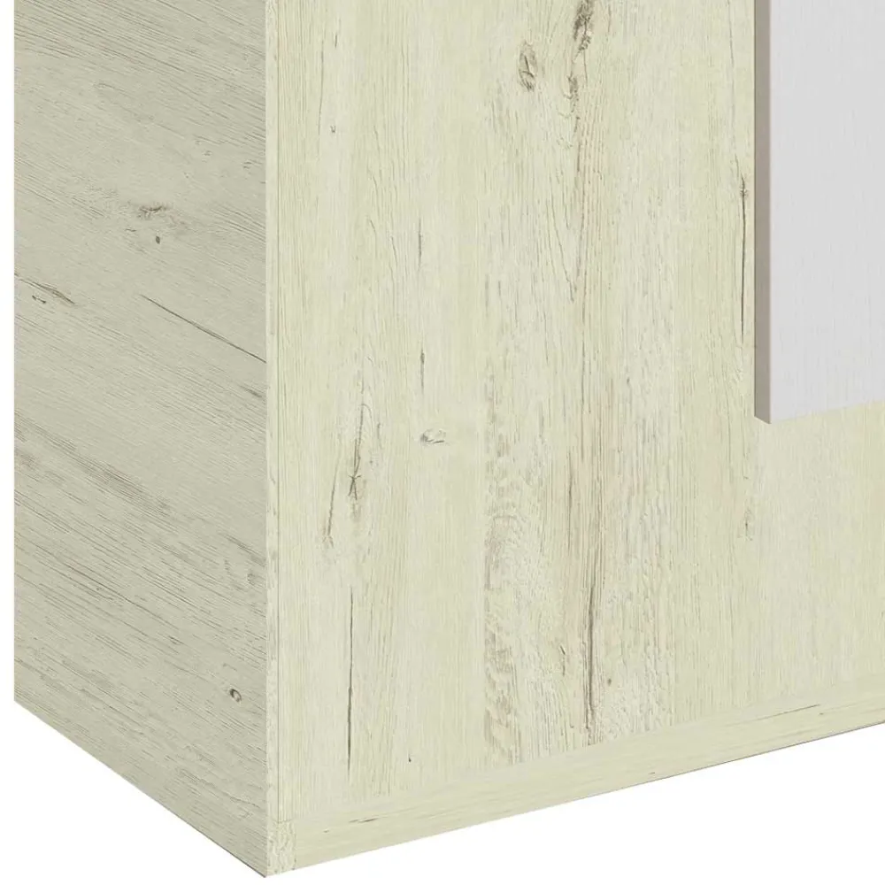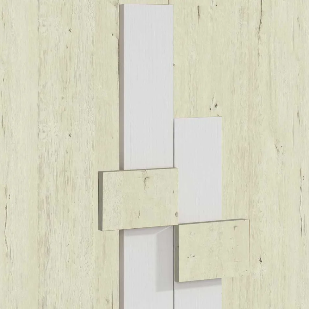- Melaminbeschichtete Oberfläche in cremeweißer und weißer Holzoptik
