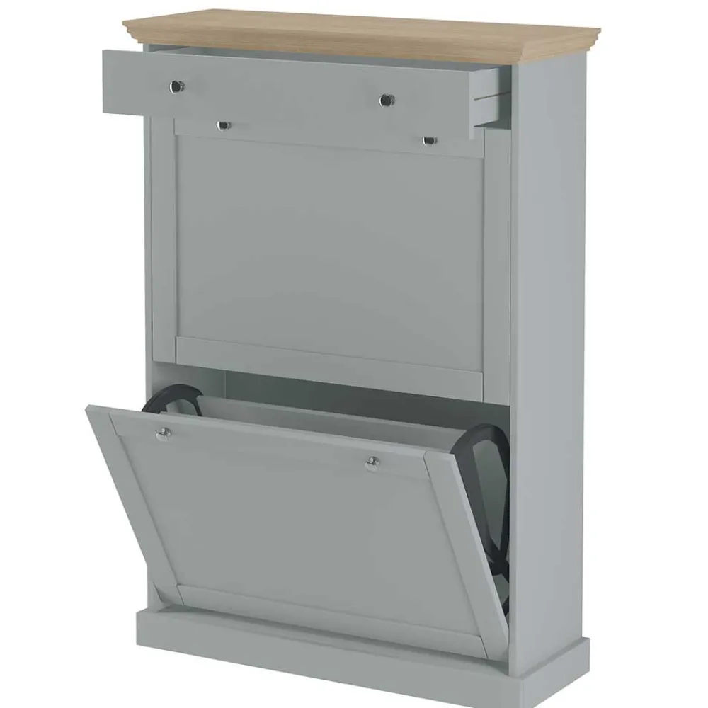 - Attraktiver Schuhschrank in Grau und Eichefarben