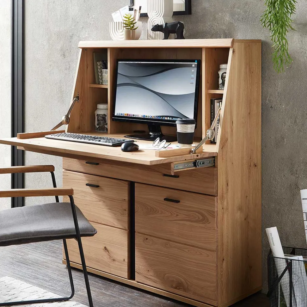 - Dieser moderne Sekretär in Eschefarben (Front) und Wildeichefarben (Korpus) sowie Schwarz ist ein echter Hingucker