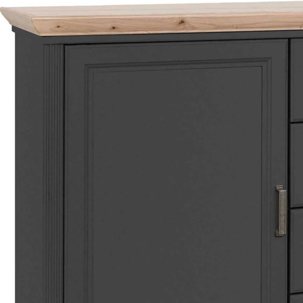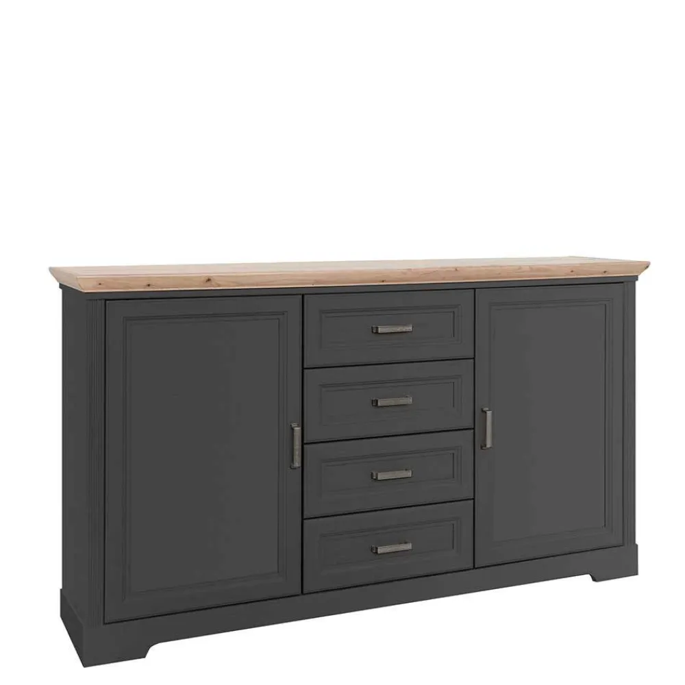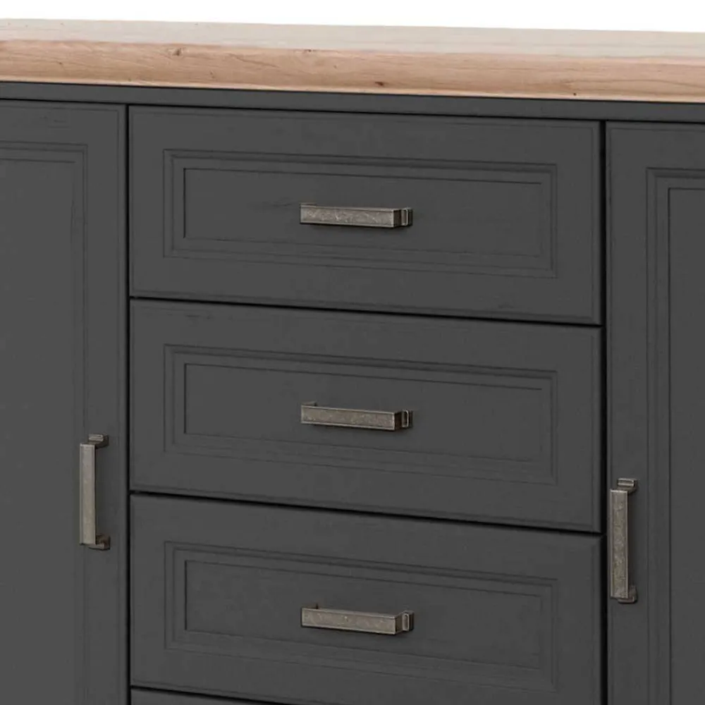- Modern präsentiert sich diese Kommode in Wildeichefarben und Dunkelgrau
